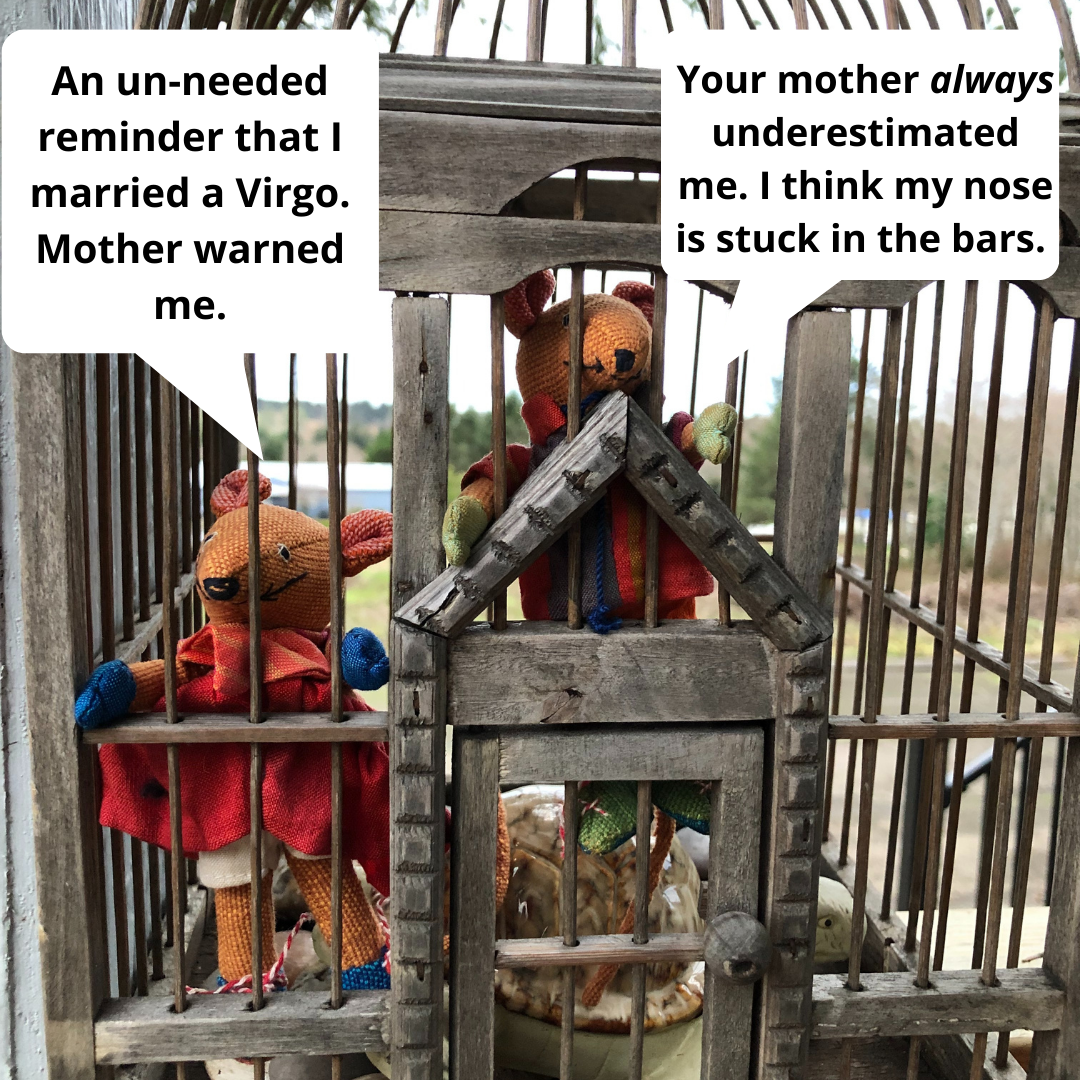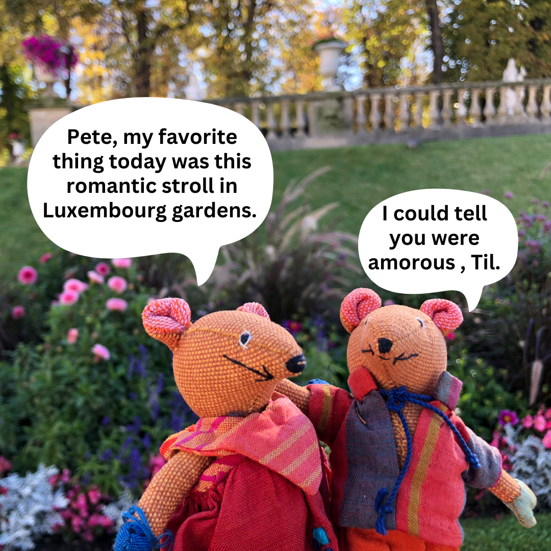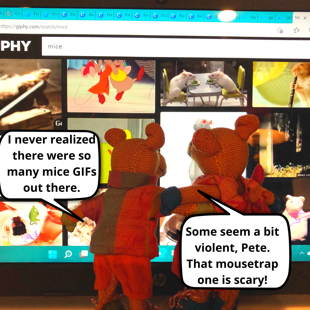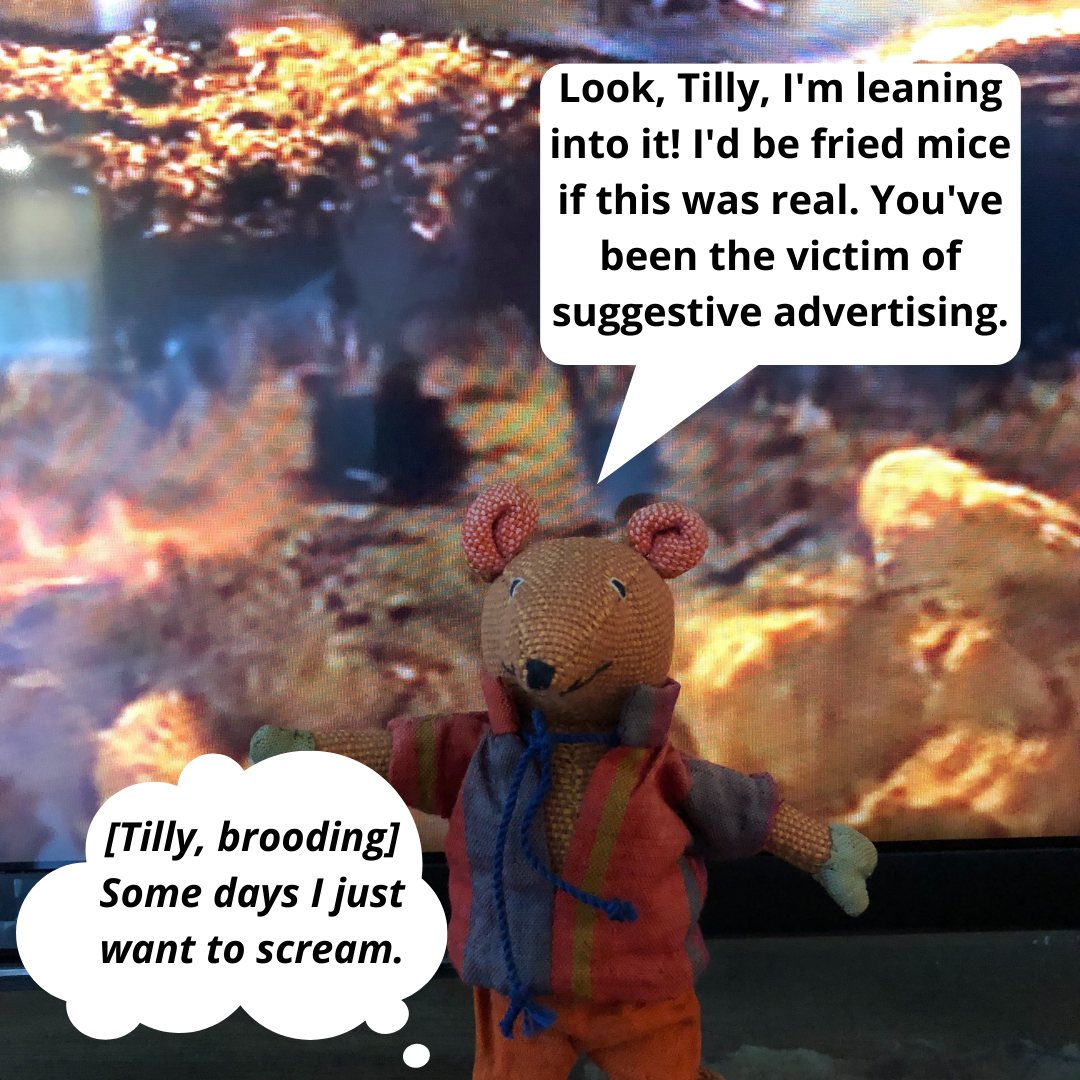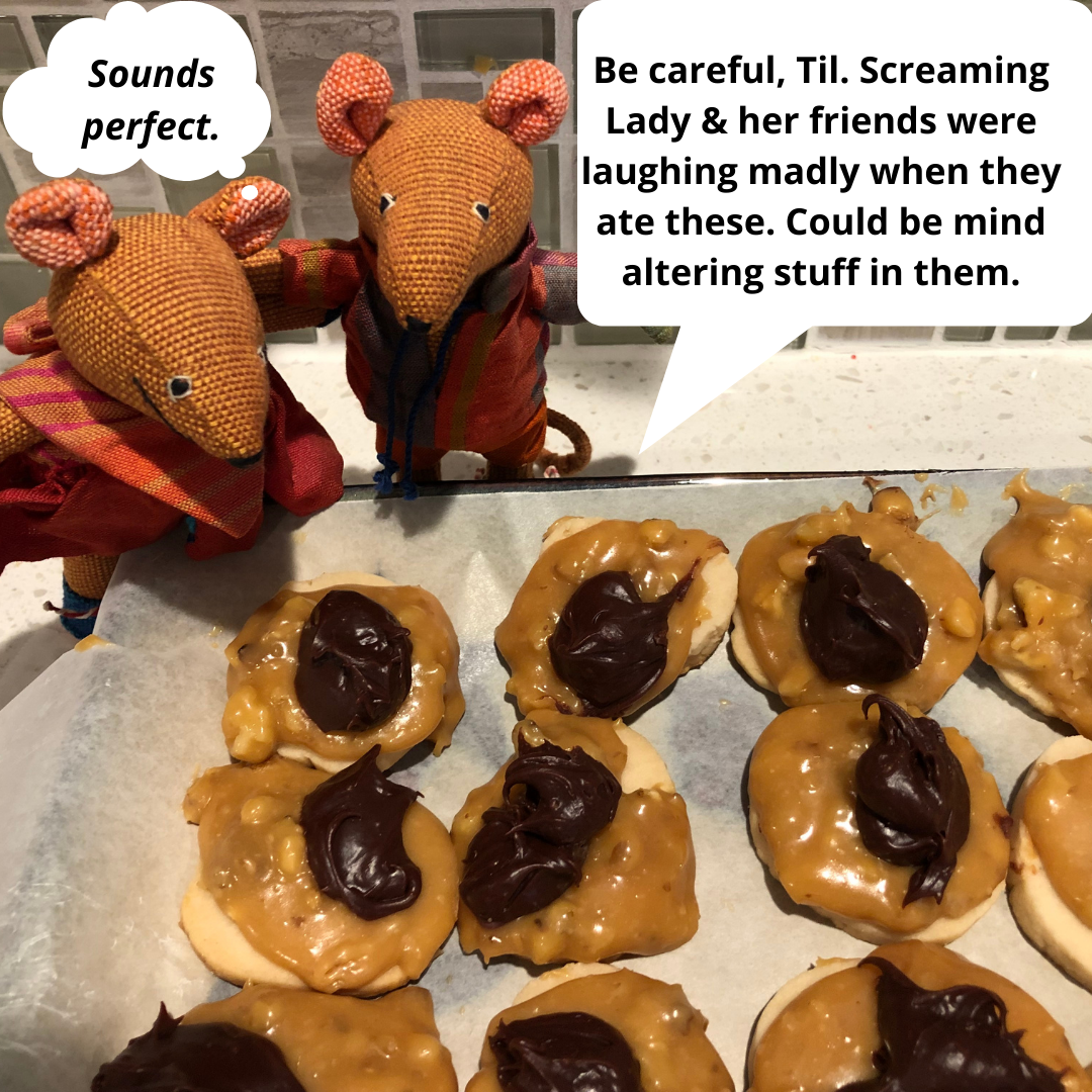 screamed, dropped their “home”, a box of dishes in which their toilet paper nest was hidden, and then they were dumped in a forest across the street. An unceremonious dumping, mind you, which has yet to be forgiven. That was when Pete & Tilly decided to move into the Big House, do their best to stay undetected, and continue their madcap adventures in the warmth and comfort of a brand new home; and occassionally travel with Screaming Lady.